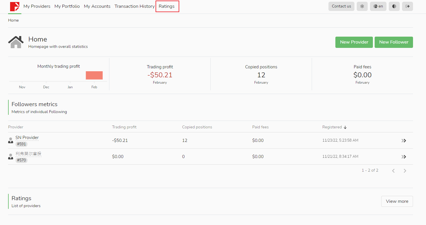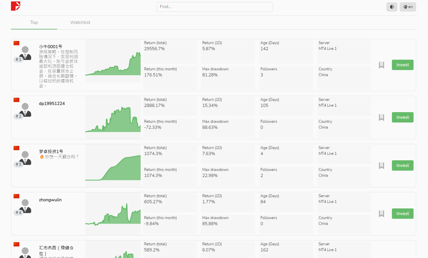 في مربع مصدر الإشارة ، يمكن للمتابعين عرض إحصاءات أداء التداول التفصيلية لكل مصدر إشارة ، مثل معدل العائد ومتوسط المعاملات المربحة ومتوسط سوق التداول وأنواع الاستثمار ، إلخ.
