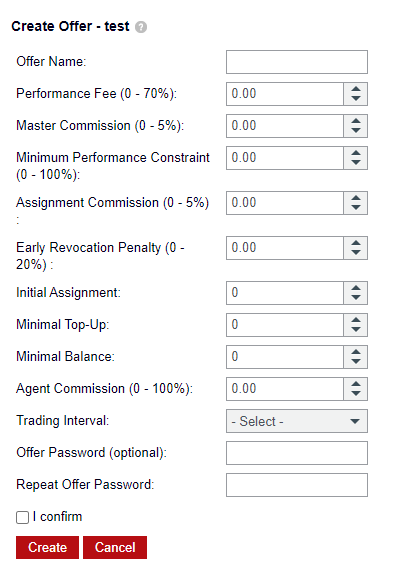 ج. أكمل نموذج إنشاء عرض الأسعار (راجع معلمات عرض الأسعار لمزيد من المعلومات حول وصف معلمات عرض الأسعار). حدد مربع الاختيار "أؤكد" وانقر على "إنشاء".