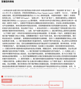 Hola, en el backend personal de Dp Funded, haga clic a la izquierda – [Acuerdo] para ingresar y aparecerá la página que se muestra en la captura de pantalla a continuación. Si ya se ha registrado en D Prime, puede hacer clic directamente en [Firmar y enviar] y luego firmar el acuerdo después de recibir el código de verificación.