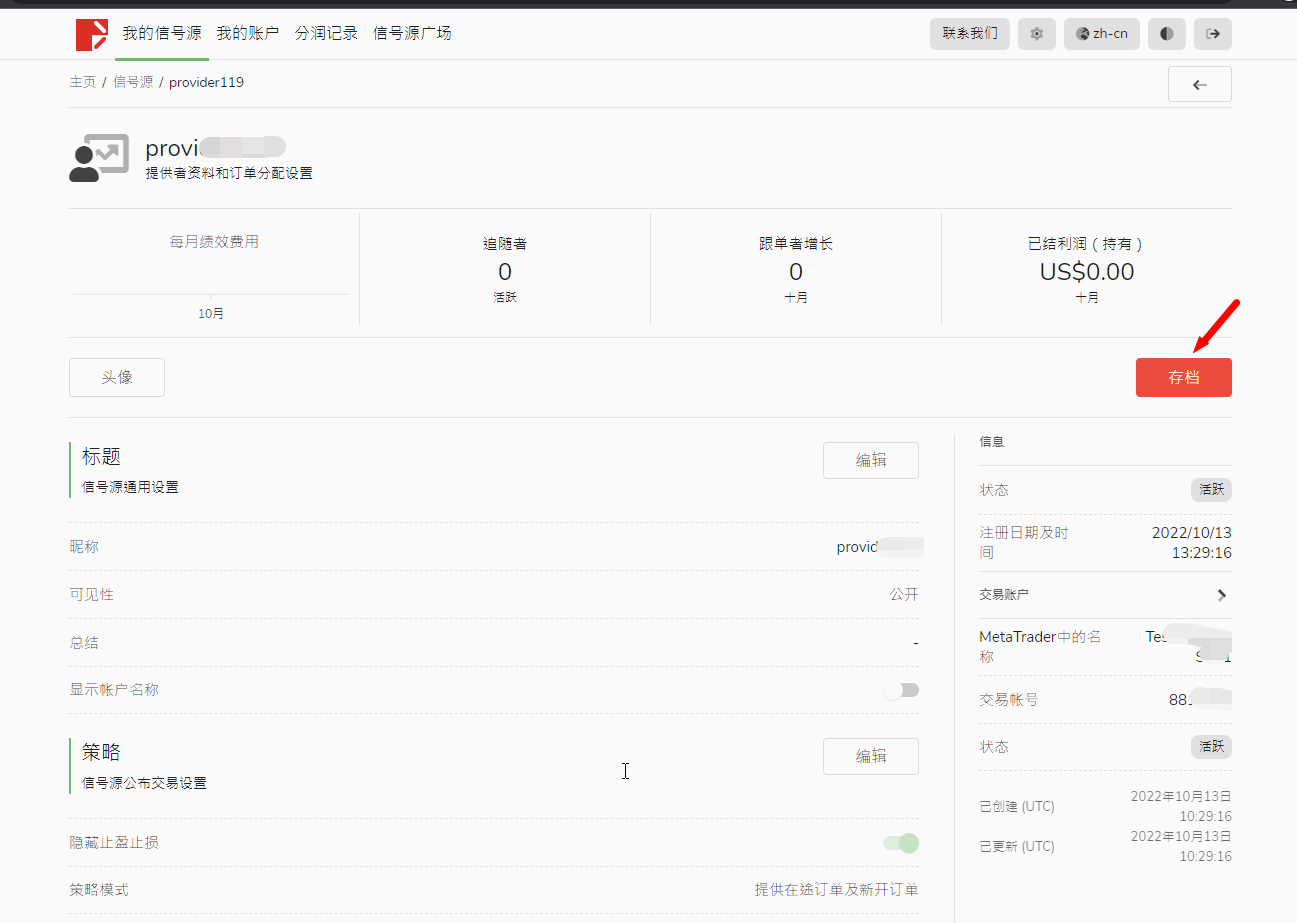存檔意味著該信號被下架,跟隨者將無法繼續跟隨,且信號源無法再次激活或上架該信號,只能選擇重新發布新信號。