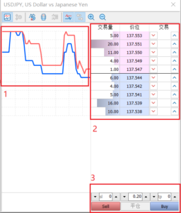• 市場深度窗口中交易窗口